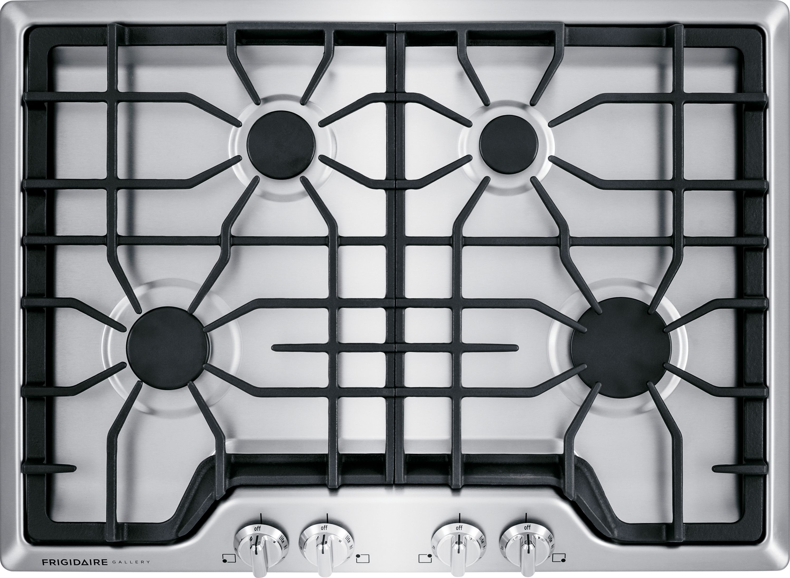 The Frigidaire 30 in. gas cooktop features four sealed gas burners that are easier to cleanup and stay looking great. The Continuous and dishwasher safe corner-to-corner cast iron grates allow to move heavy pots and pans without lifting. Cooktop contains spillovers for easier clean up. The Cooktop is approved for installation above any of Frigidaire Single Electric Wall Ovens.Read More