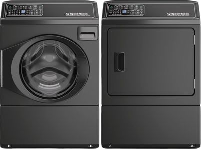 Speed Queen® Matte Black Laundry Pair with a 3.5 Cu. Ft. capacity front load washer and a 7 Cu. Ft. capacity front load gas dryer.Read More